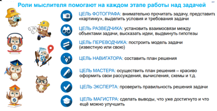 На доске карточки с текстами Все задания выполняются в группах, и результаты сопоставляются с выполнением задания на доске. - Так как главный герой сегодняшнего урока – задача, то в работе вам поможет превращение в роли мыслителя. - Прочтите внимательно тексты на карточках. Определите, какая карточка лишняя? Эта карточка снимается с доски.
