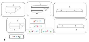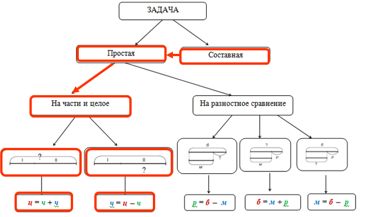 На части и целое и на разностное сравнение. Может быть неизвестна часть, может быть неизвестно целое. Может быть неизвестна разность, или большее число, или меньшее число. Мы сможем ее пользоваться при решении задач. |
